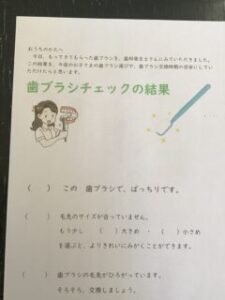 歯科衛生士さんに、「上手にみがけているね」「この磨き方いいね」と、一人ひとりのみがき方を丁寧に見ていただき、声をかけてもらいました。