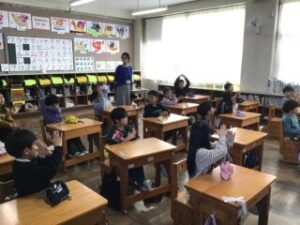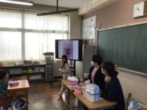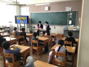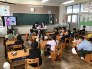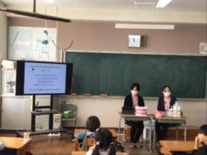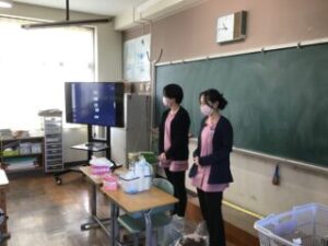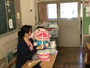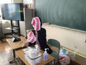 5日、林歯科の歯科衛生士さんお二人に来校いただき、1年生に歯みがき指導をしていただきました。