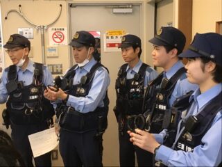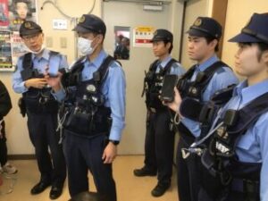 警察手帳、警笛、手錠、警棒、防弾チョッキ、携帯型状況共有端末無線機などを見せていただきました。
