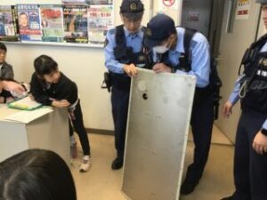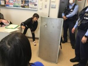 警棒や手錠、防弾チョッキに触らせてもらいました。