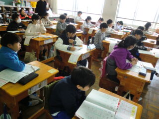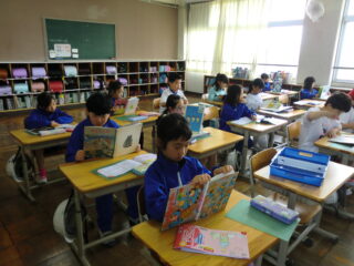 1日の始まり、毎朝15分間は読書や漢字学習の時間です。2年生、3年生は集中して読書をしていました。