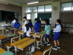 チャイムが鳴りました。(先生が教室を離れている間に)集中して漢字学習をしていた3年生は自分たちでドリルを提出し始めました。チャイムで行動できてさすがです。