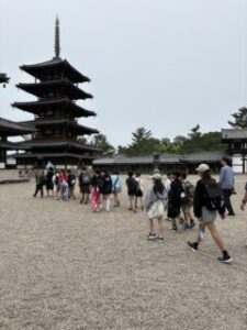 ホーム > 2025年度 / 学校活動の様子 R7 <6年>修学旅行1日目 6年生が修学旅行に行っています。朝7:00嬉野振興局を出発し、まずは法隆寺。 次に若草山前の古都屋さんで昼食。東大寺へ。 それから京都へ。銀閣寺、清水寺へ。 班別でお買い物をしてホテルへ向かいました。 夕食、レクを楽しんで就寝です。 1日充実した6年生。雨に降られることなく過ごせました。明日も楽しみな体験がいっぱいです。 シェアする Twitter でシェア はてなブックマークに保存 LINE でシェア Facebook でシェア Pocket に保存 Feedly で購読 関連投稿 学校活動の様子 / 2023年度 4年・6年の廊下には・・・ 2024年度 / 学校活動の様子 1年 体育 初めての水泳です!! 学校活動の様子 / 2023年度 4年 社会 三重県の伝統工芸品について学ぼう!! 2024年度 / 学校活動の様子 5年 社会 世界には・・・? 2024年度 / 学校活動の様子 後期委員会、始動!! 学校活動の様子 / 2022年度 しおりづくり(4年) 前の投稿 R7 〈3年〉毛筆 次の投稿 R7 <6年>修学旅行2日目